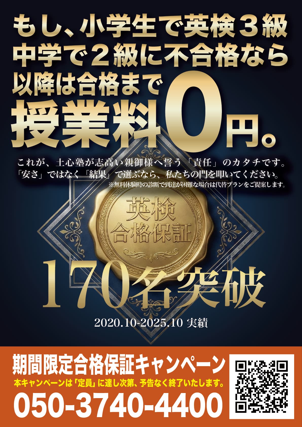 「近くにあるから通う塾」ではなく、「子供の未来を変えられる場所」へ。 わざわざ車を走らせてでも通わせる価値がある、**士心塾史上、最も強力な「合格保証制度」**が始動します。
